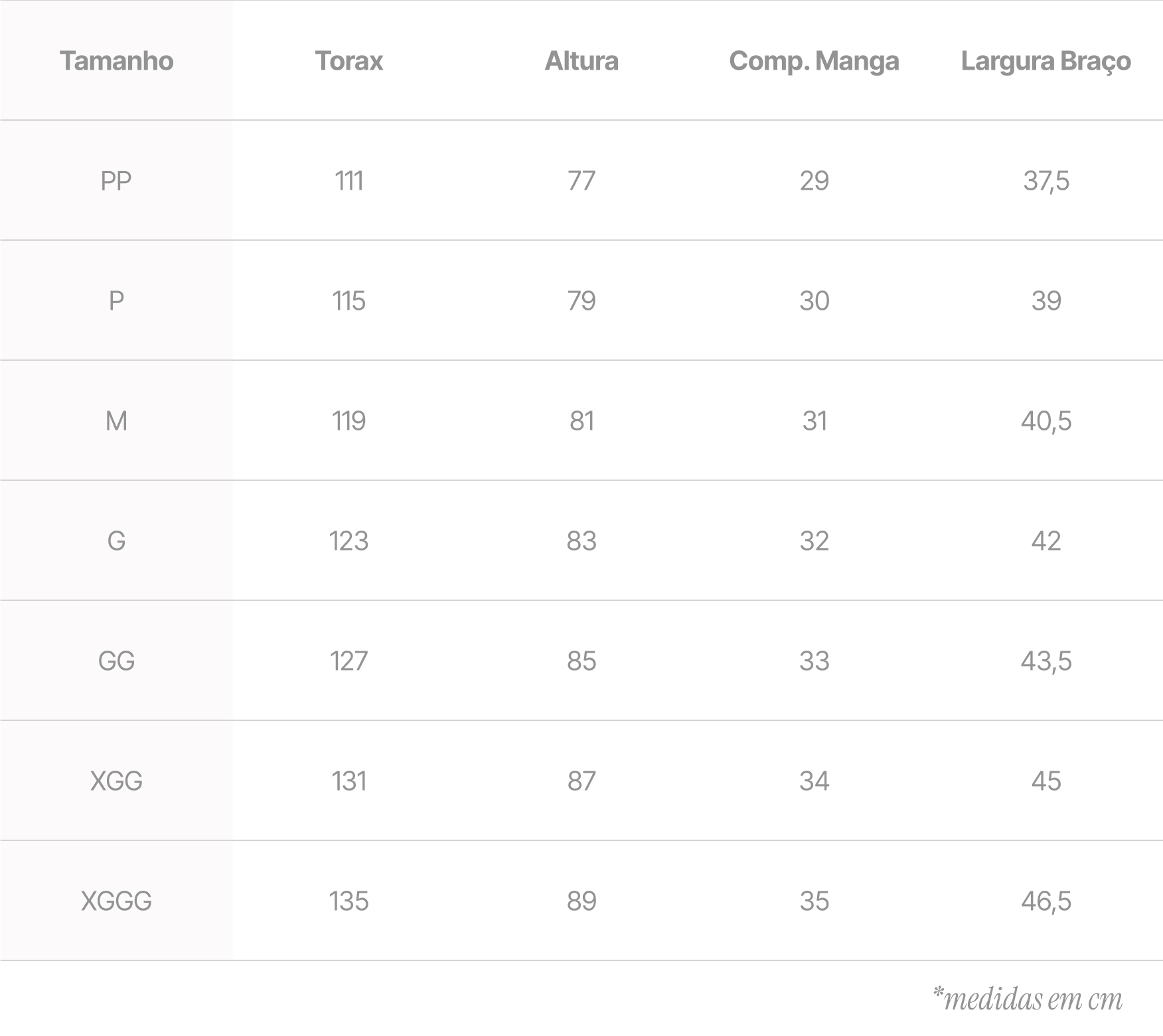 – Na imagem, Sétimo veste tamanho P, mede 1,70m e possui 70kg.